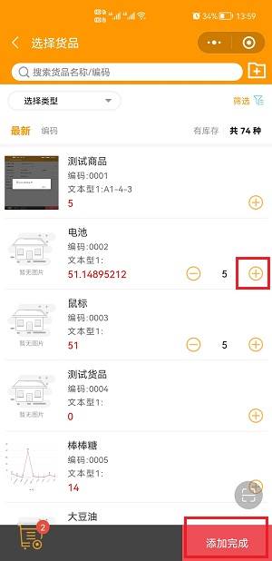 9、确认本次需要执行采购入库的货品数量后点击【添加完成】。