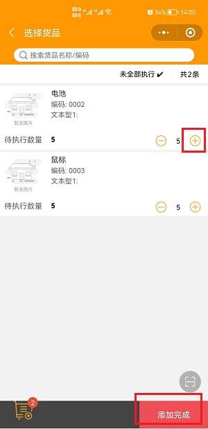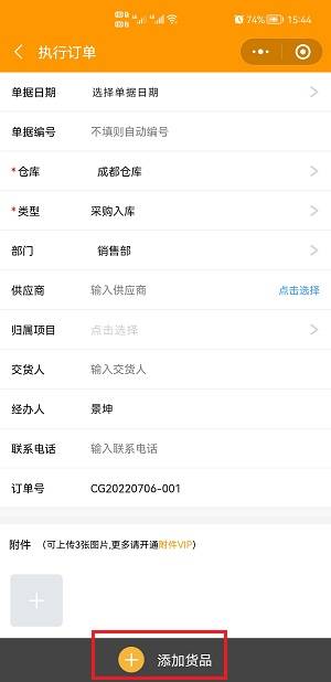 8、补充单据信息后点击【添加货品】添加需要执行的货品数量。