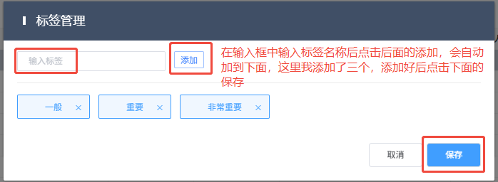 这里我对客户的重要程度设置了三个标签,设置后保存。