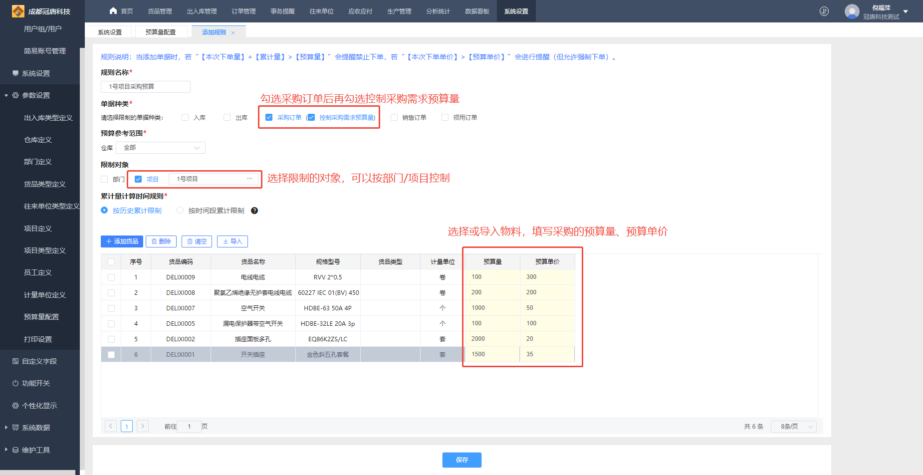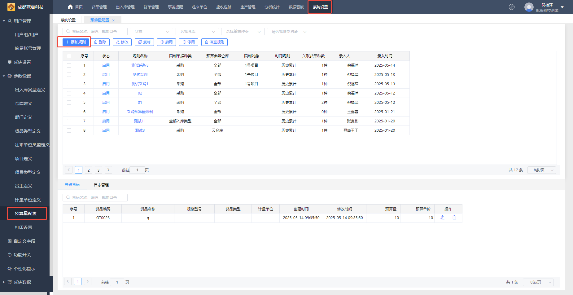 1.进入【系统设置】-【预算量配置】,点击【添加规则】