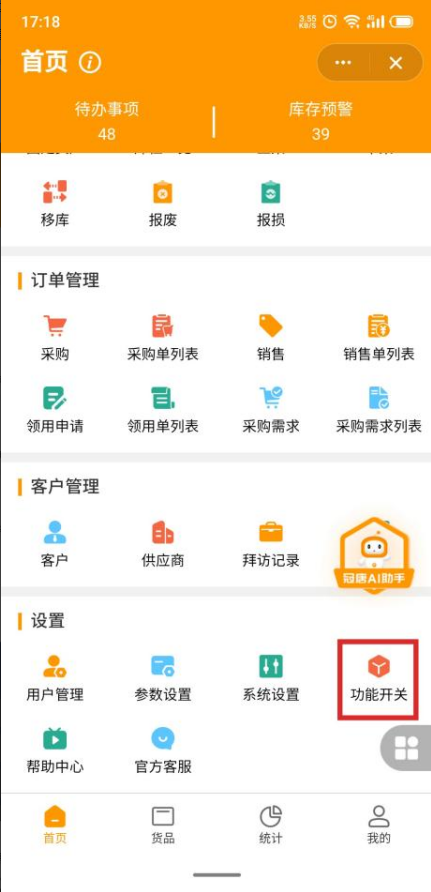 (1)在“系统设置”→“功能开关”,将“税率”功能“开启”,点击“保存”;