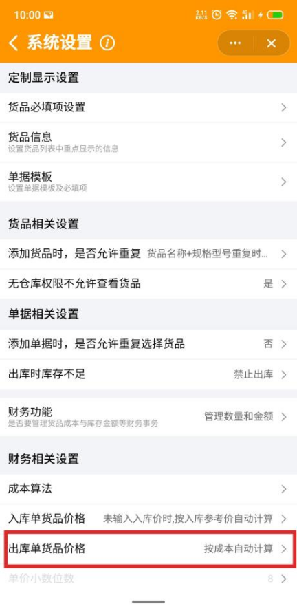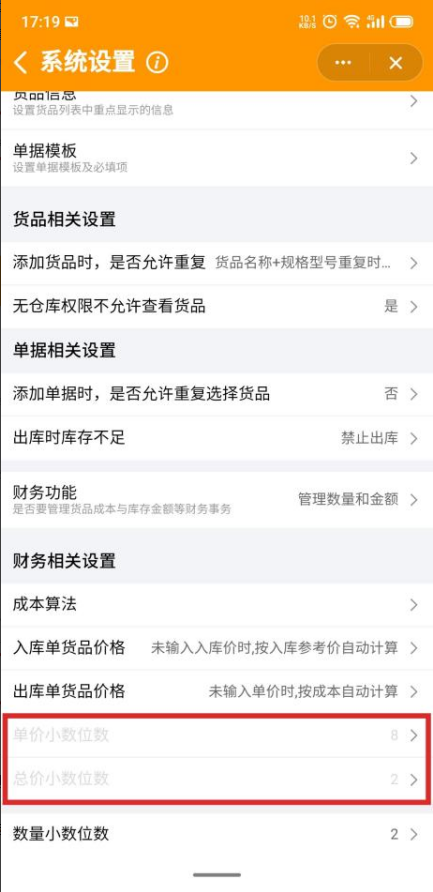 (2)进入“首页”→“系统设置”中,查看小数位数,系统默认自动将“单价小数位数”调整为8位,“金额小数位数”调整为2位,且不可手动调整小数位数。