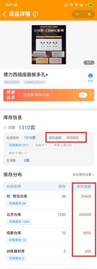 (1)在货品列表中,“库存金额”始终以入库成本金额参与计算,不展示含税金额。