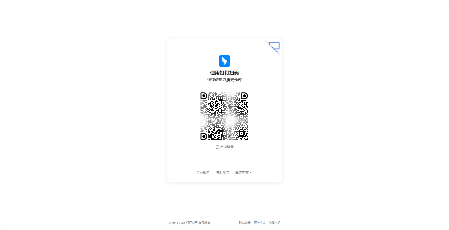 如果不想在钉钉中直接打开冠唐云仓库使用,或者电脑上没有登录钉钉,或者需要登录另外一个钉钉号的冠唐云仓库账号,可以直接在网页端登录使用,以下是详细的操作步骤
