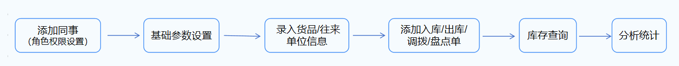 提示:系统已配置默认测试数据,可立即开展日常的出入库等核心业务操作,后续可根据企业需求开启审核、订单管理等进阶功能。