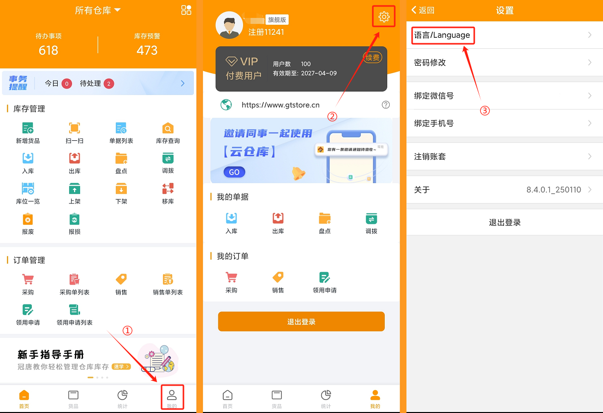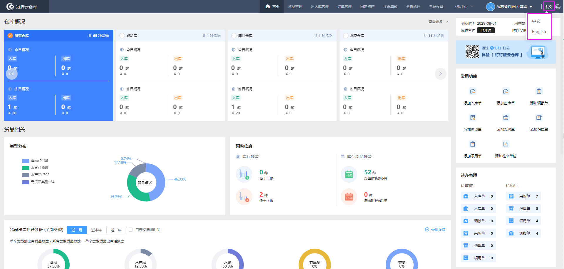 冠唐云仓库支持“中英”两国语言个性化展示,消除语言障碍导致的管理问题